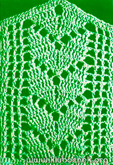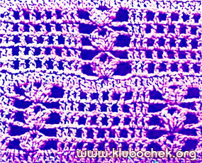 Схемы и образцы, сочетающие в себе бугорки и ажурные элементы, вы найдете на странице Ажурные узоры с бугорками.