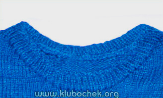 На спинке вырез делают менее глубоким, чем на передней половинке изделия. Закончив спинку и перед, по краю выреза набирают петли для его обработки.