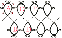 Чтобы научиться плести кружево фриволите, после освоения техники плетения основных элементов, можно выполнить эти упражнения, шаг за шагом двигаясь от простого к более сложному.